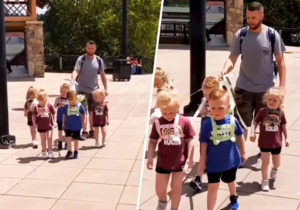 Un jeune papa de 31 ans fait polémique après avoir promené ses quintuplés en laisse: «Ce sont des enfants, pas des chiens!»