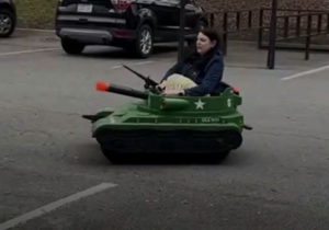 Pour faire face à la hausse du prix de l’essence, cette maman de Savannah, aux États-Unis, utilise désormais le char miniature de son fils pour aller faire ses courses.