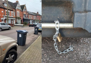 Il voulait déplacer une poubelle pour se garer, il se rend compte qu’elle a été enchaînée à la route