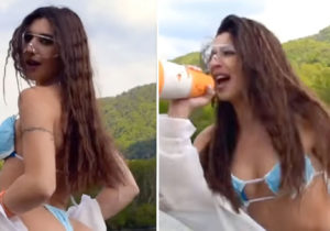 Une complotiste a enfilé un bikini fait avec des masques pour chanter contre la COVID-19