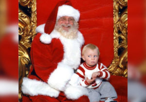 Ce petit garçon utilise la langue des signes pour dire ‘Au secours’ sur les genoux du Père Noël