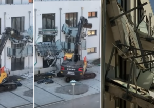 Des images totalement ahurissantes venant d’Allemagne font le tour de la toile depuis quelques heures. Sur celles-ci, on peut voir un entrepreneur démolir un nouvel immeuble à appartements à