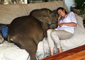 Elle a sauvé un éléphanteau de la noyade, aujourd’hui il la prend pour sa maman et ne la quitte plus