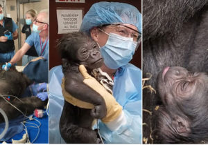 Un bébé gorille est né au zoo de Franklin Park à Boston, après avoir été mis au monde par césarienne avec succès. Le bébé mâle et sa mère Kiki