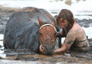 Cette jeune femme reste aux côtés de son cheval enlisé dans la boue pendant plus de trois heures : maîtresse et animal sauvés par miracle