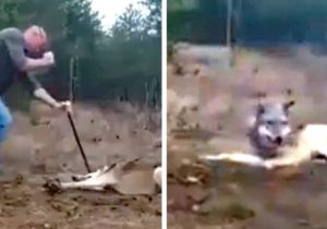 Cet homme risque sa vie pour sauver un loup sauvage pris dans un piège