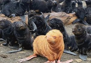A cause de sa couleur inhabituelle, ce rare bébé phoque roux risque d’être rejeté