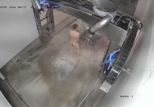 Nu, un jeune homme prend une «douche» dans un lave-auto !!