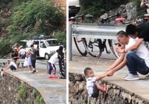 Il suspend son fils de 3 ans plusieurs secondes dans le vide pour une photo idéal de souvenir de vacances