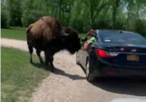 Un bison a donné un coup de corne à un petit garçon qui sortait imprudemment sa tête par la vitre d’une voiture lors d’un safari dans le parc animalier