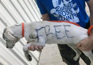 Elle abandonne une petite chienne et écrit « Gratuit » sur sa fourrure avec un marqueur indélébile