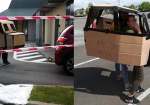 La famille fabrique une voiture en carton pour avoir accès au service à l’auto du McDonald’s