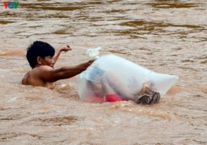 Pour aller à l’école, des enfants vietnamiens doivent traverser une rivière dans des sacs en plastique