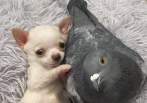 Un pigeon qui ne peut pas voler s’est lié d’amitié avec un chiot qui ne peut pas marcher