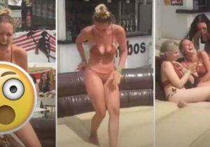 Elle se retrouve dans une situation très embarrassante en enfourchant ce taureau mécanique
