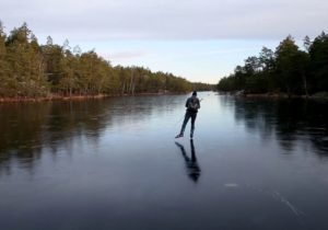 Un homme s’est rendu sur le lac de Lissma Kvarnsjö près de Stockholm pour patiner sur la fine couche de glace de 45 mm dans le but de produire