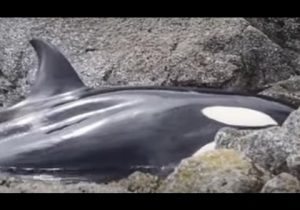 La scène s’est déroulée en Colombie-Britannique. Alors qu’elle essayait d’attraper de la nourriture, cette orque s’est retrouvée coincée sur un rocher. Les habitants du coin ont alors fait appel