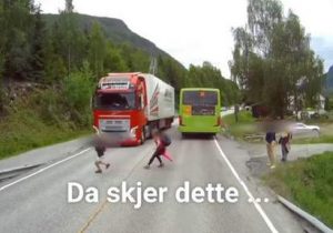 Les images datent du 19 juin dernier dans le petit village norvégien de Gol. Mais c’est seulement aujourd’hui qu’elles ont été diffusées, filmées par la dashcam d’un chauffeur de