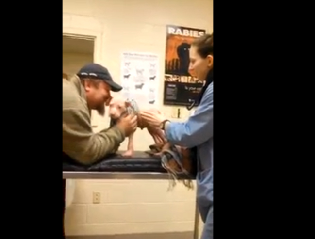 Ce bébé pitbull revoit l’homme qui la sauvé, sa réaction est impressionnante !