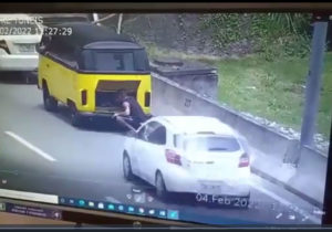 Le vendredi dernier à l’entrée d’un tunnel situé à Rio de Janeiro, au Brésil, un automobiliste en panne avec son van intervenait sur le moteur à l’arrière du véhicule