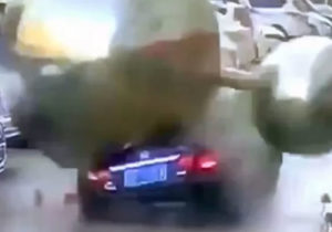 Une boule géante en métal est tombée d’un immeuble et a écrasé une voiture en Chine.