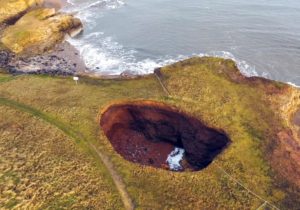 Un énorme trou qui révèle une plage souterraine est apparu dans les falaises de Whitburn, près de Sunderland, dans le nord-est de l’Angleterre. L’érosion et les glissements de terrain