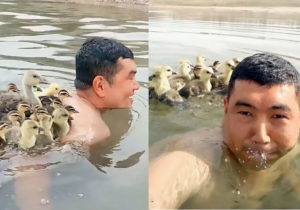 Un fermier apprend à nager… à des canetons et des oisons !
