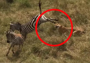 Une maman zèbre risque de sa propre vie pour sauver son petit d’une attaque de lion