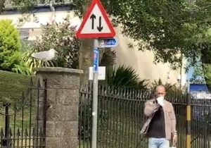 Sur la terrasse d’un pub à Tenby dans le Pays de Galles, Neil a été témoin d’une scène insolite dans la rue. Un goéland qui attendait patiemment sur un