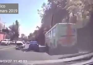 Au centre de Mexico, une caméra embarquée d’un automobiliste a enregistré une scène digne d’un film d’action, mercredi dernier. Capturées un peu avant midi, les images montrent un homme,