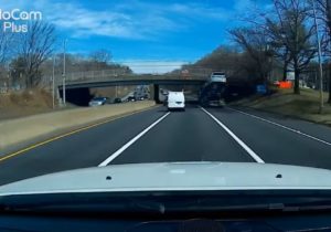 Une voiture neuve installée sur la remorque d’un camion a percuté un pont de l’autoroute I-95 à Norwalk, dans le Connecticut. Sous la violence du choc, le véhicule a